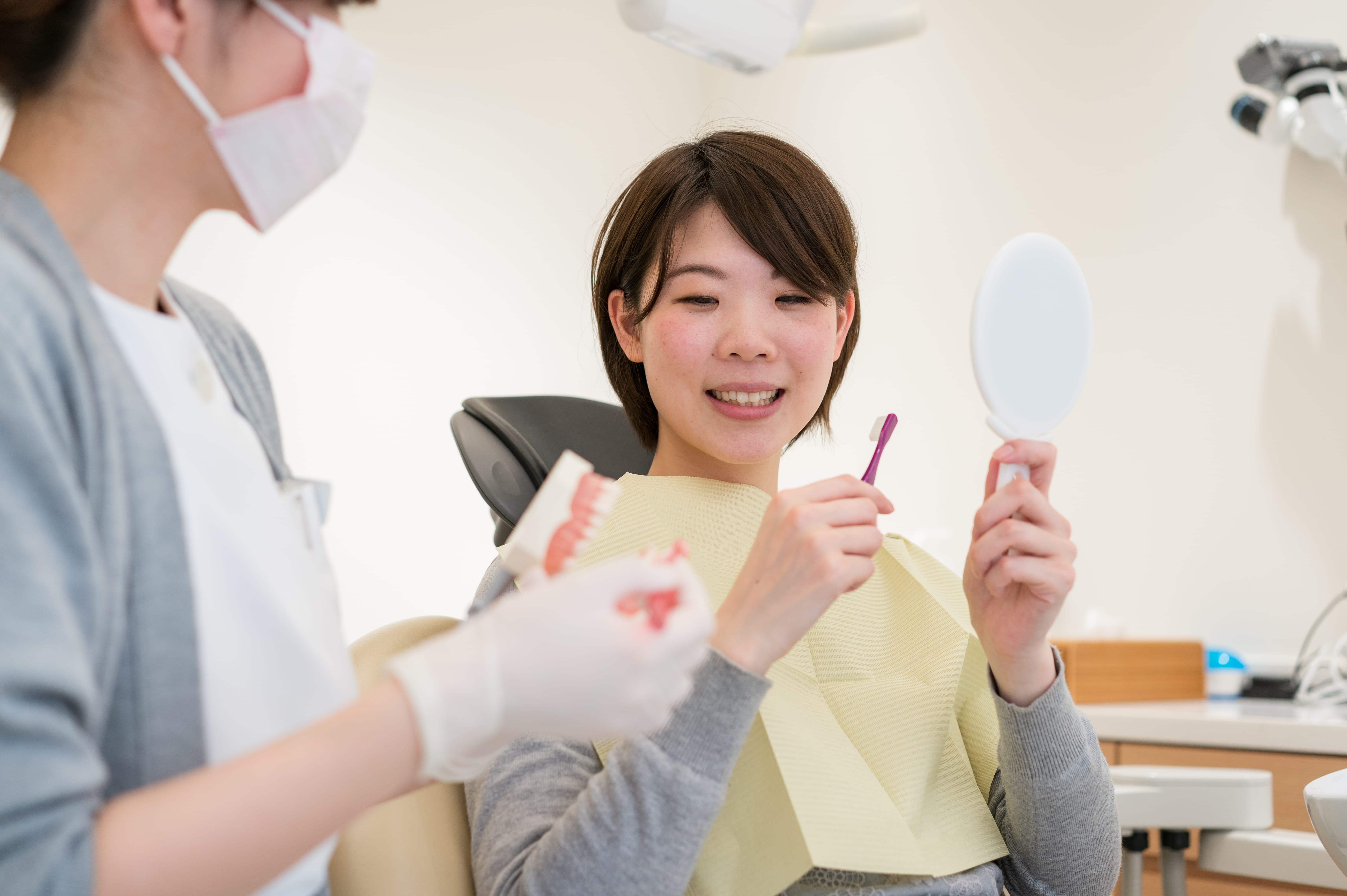 歯科衛生士による徹底したプラークの除去を行い、ご家庭でのブラッシングやフロスの効果的な使い方をご指導します。