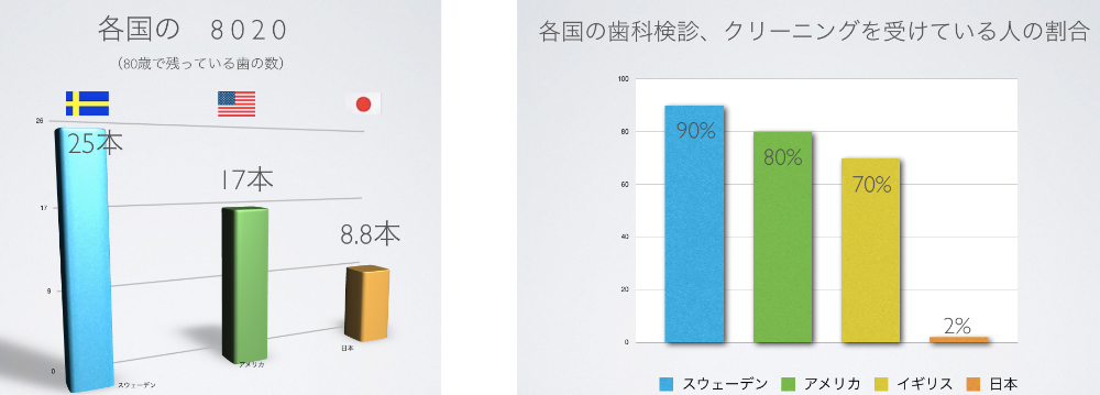 日本では80歳でのこっている歯の数が10本などどいわれています。